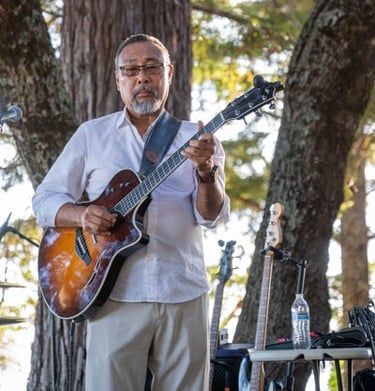 I started playing guitar at 11. By 16 and a half, I became a partners with Joe Coffman, who owned Sounds Express Music, a local music store, and since then, I have played professionally and written original music. Music affects the heart, mind, and soul. When I perform, I fall in love with my music all over again, creating beautiful feelings that touch my heart and my audiences. I perform both locally and internationally, and I am known for my fingerpicking and lead guitar skills. I select melodies that reach into the hearts of my listeners.